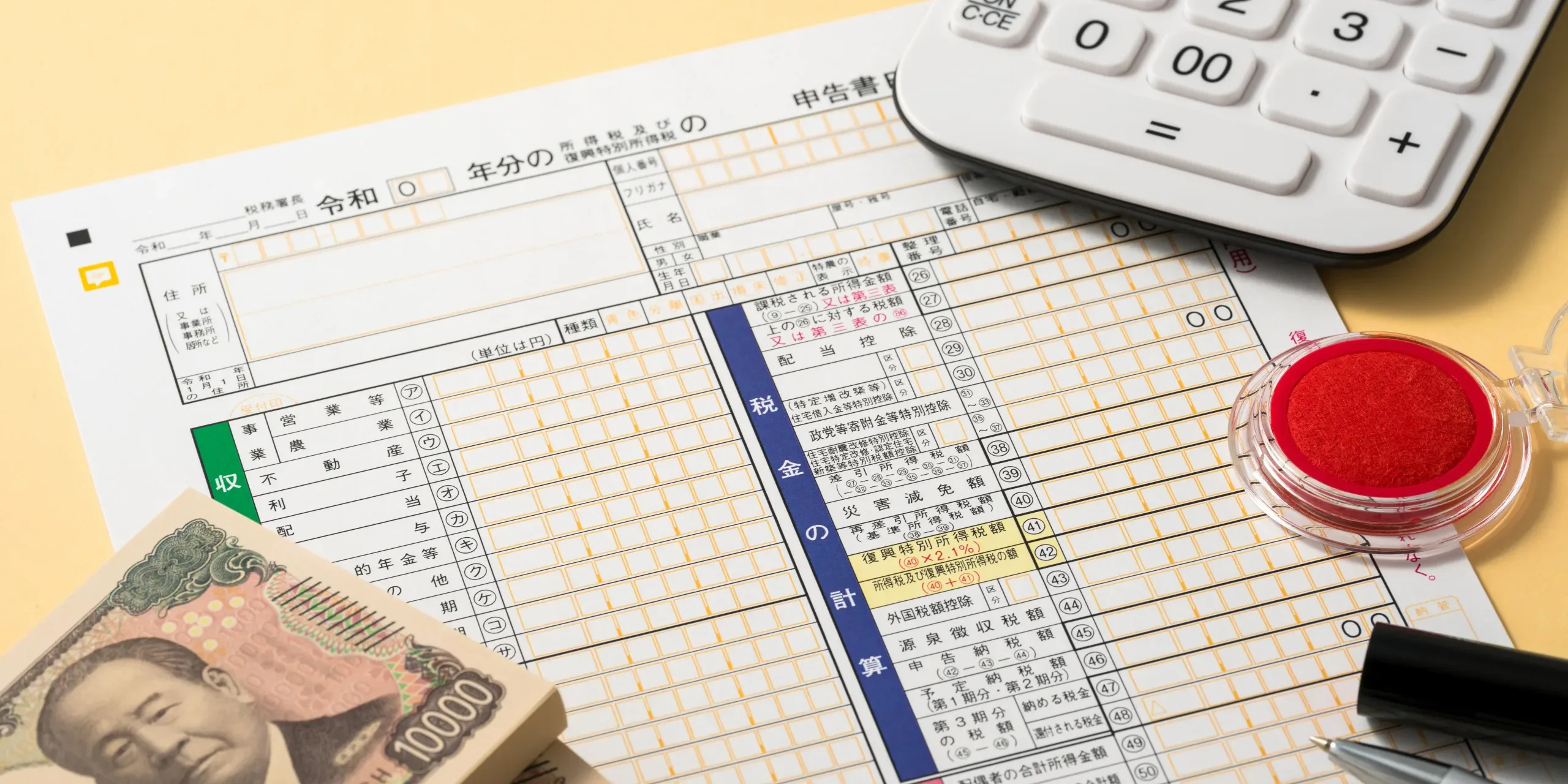 最終的に納める金額は、所得税額に「復興特別所得税」を加えた合計額になります。復興特別所得税は、東日本大震災の復興財源として2013年から2037年まで課されるもので、所得税額 × 2.1% が上乗せされます。